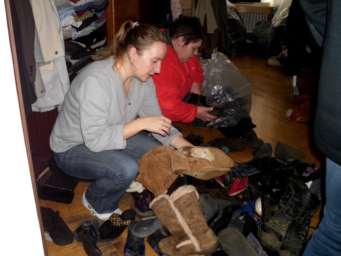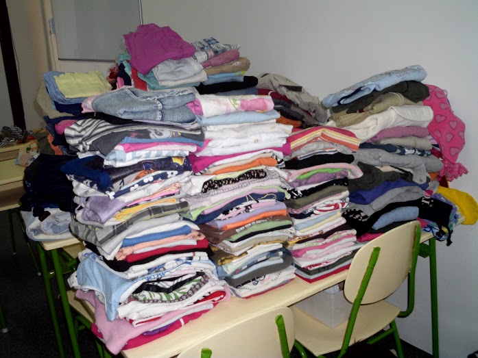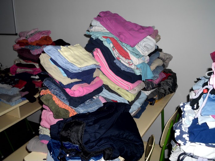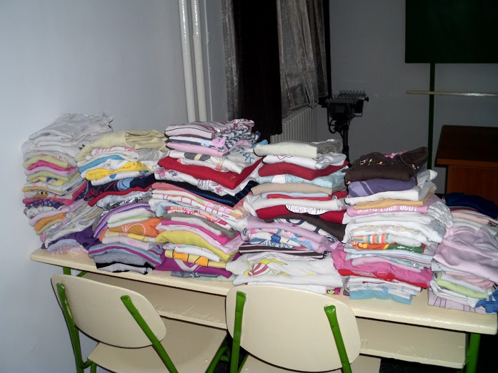 Az első szállítmányból kiválogatott gyermekruhák Nagykarácsony településre kerültek, ahol a családgondozók segítségével osztották ki az adományokat.