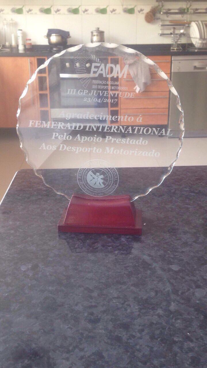 For the continuous free medical support to the Motorsports the FADM handed over a trophy to FEMERAID International as a token of recognition, and also sent a letter to Sir Dr. Nuno Cosmelli - Director of FEMERAID Angola for the regular assistance.