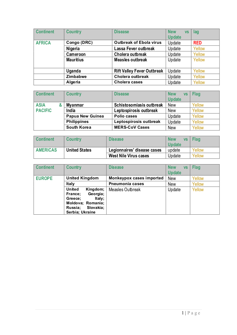 Since mid-May 2018, there have been over 230 suspected and confirmed cases of cholera, including at least 17 deaths in two regions (North, Centre) with several other regions reporting suspected cases...